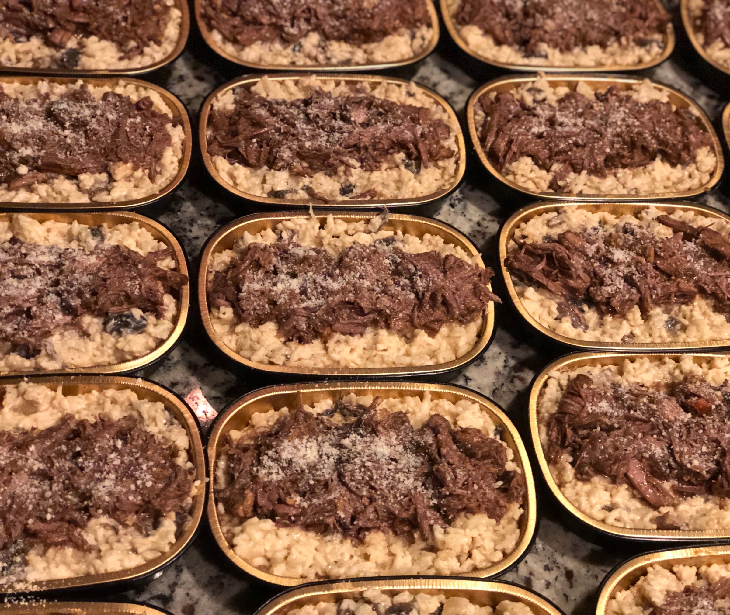 Slow Cooked and Pulled Beef Chuck, Mushrooms and Carrots in a Creamy Parmesan Risotto